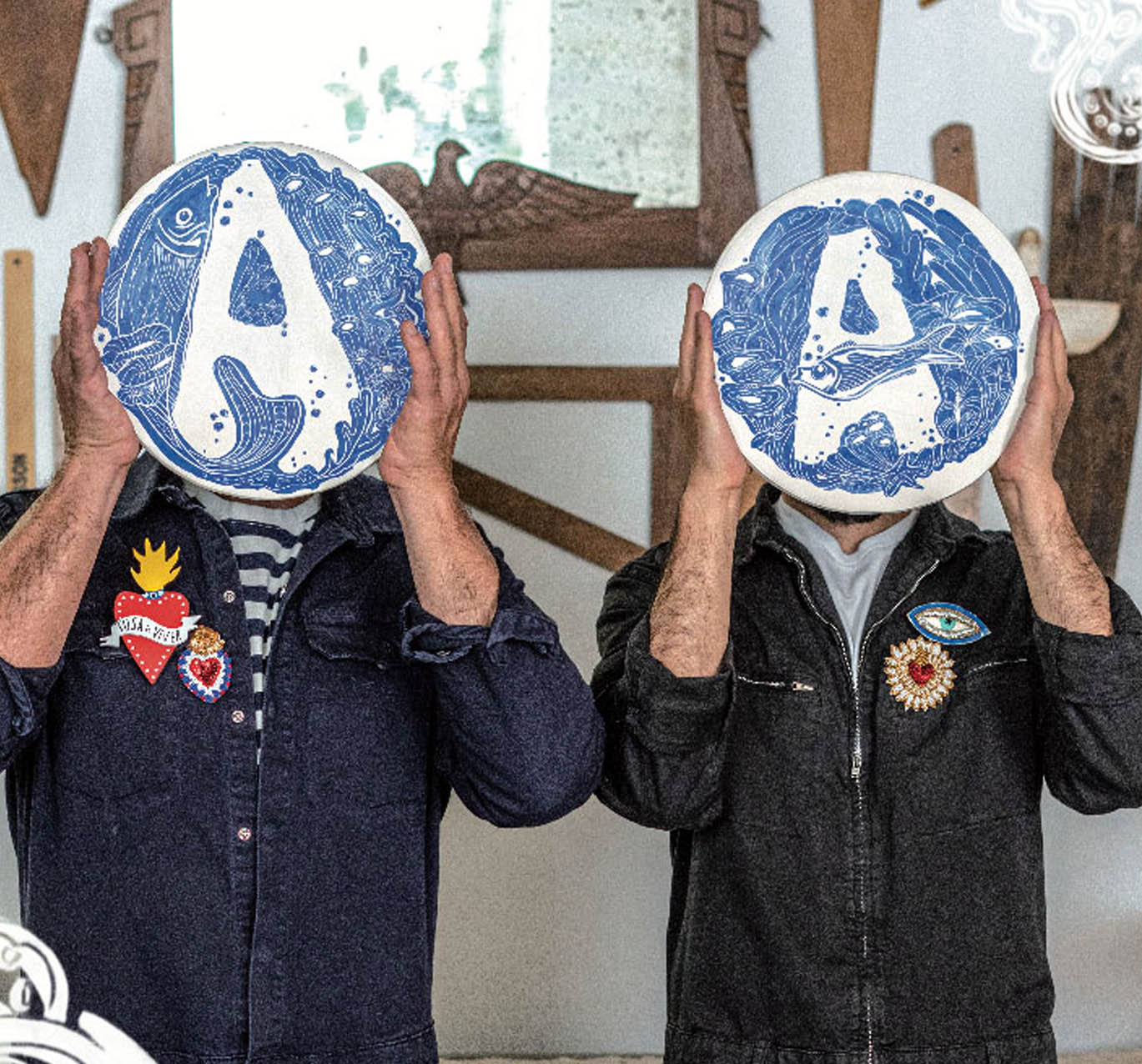 Sobre a peça produzida em exclusivo para a A Magazine, a dupla criativa afirma: “A combinação das cores azul e branco faz parte do nosso imaginário de verão e do mar, essas cores são também as da tradição dos painéis de azulejos e cerâmica portuguesa. Fizemos um “A” abraçado por mundo marinho azul, e este desenho foi feito diretamente num prato utilizando uma técnica chamada esgrafitado. Nesta técnica o engobe azul, uma argila líquida com corante, é aplicado sobre o prato ainda quando a argila está crua, depois essa camada de tinta é raspada deixando visível a cor da base, depois o prato é queimado a 1000 graus. Todo o processo é manual e executado por nós, desde a produção do prato, o desenho original até à queima, é por isso que cada objeto nosso é sempre diferente. Trata-se de um um exemplar único.