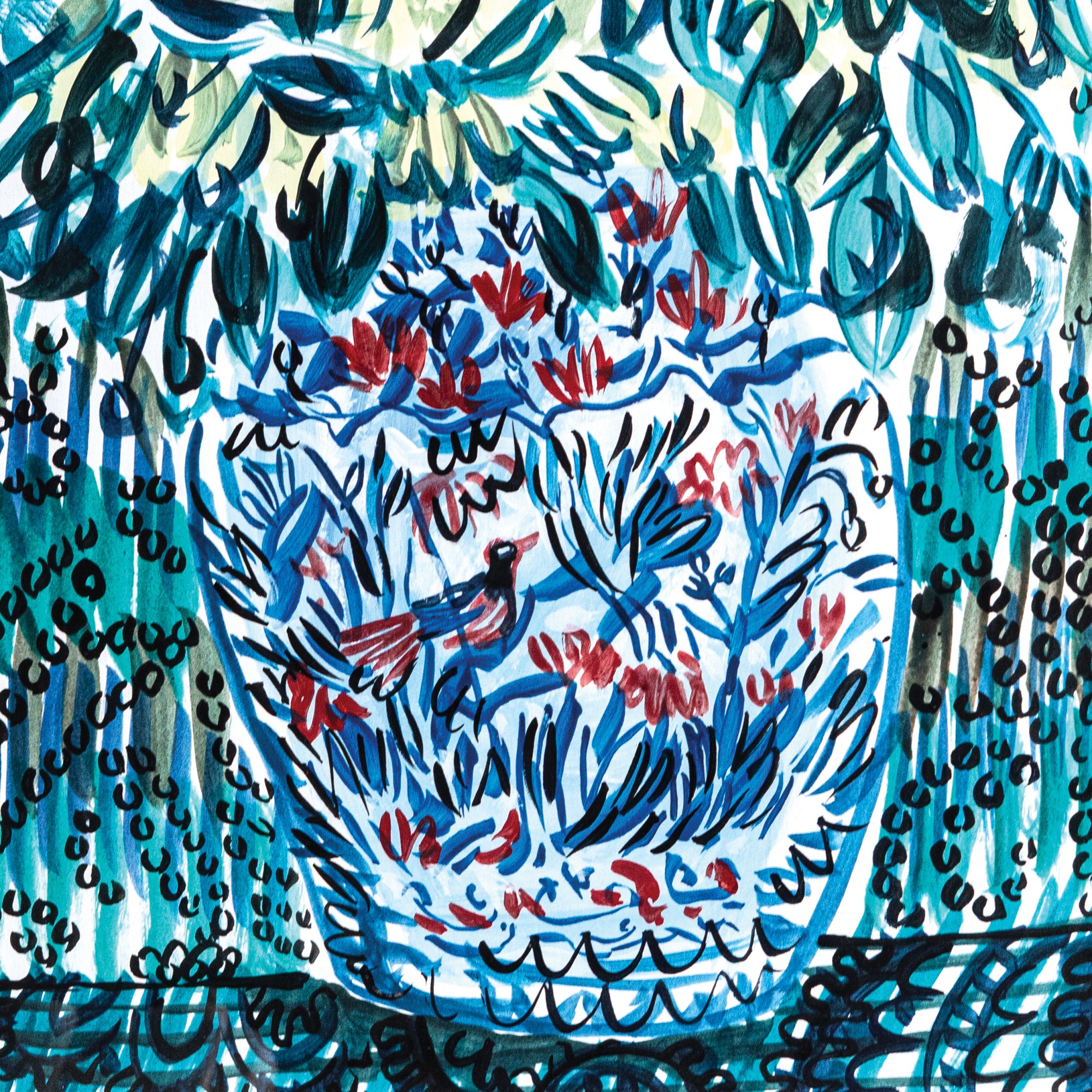 Através das esculturas cerâmicas que representam aves e elementos vegetais, pretende assim convidar a natureza, através das suas cores e texturas, para dentro do conceito de hotel. Desta forma, propõe um diálogo entre aquilo que permanece e aquilo que escapa, presença pictórica de vegetação e de aves. A presença destas últimas, possivelmente migratórias, convocam a noção de movimento, de procura, de liberdade e de fragilidade. As plantas, por sua vez, sugerem raízes possíveis, presença imóvel, crescimentos inesperados, passagem do tempo que se dá de forma silenciosa.